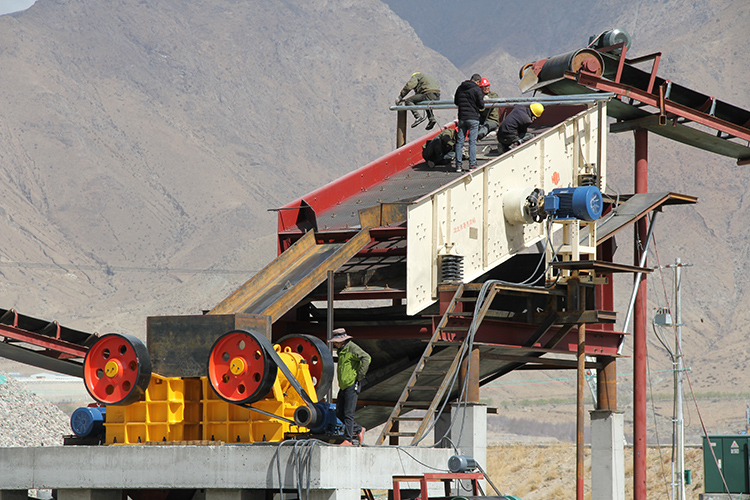 本產(chǎn)品以電動機(jī)為動力,通過電動機(jī)皮帶輪,由三角皮帶和槽輪驅(qū)動偏心軸,使動顎按預(yù)定軌跡作往復(fù)運(yùn)動,將進(jìn)入由固定顎板、活動顎板和邊護(hù)板組成的破碎腔內(nèi)的物料破碎,并通過下部的排料口將成品物料排出。